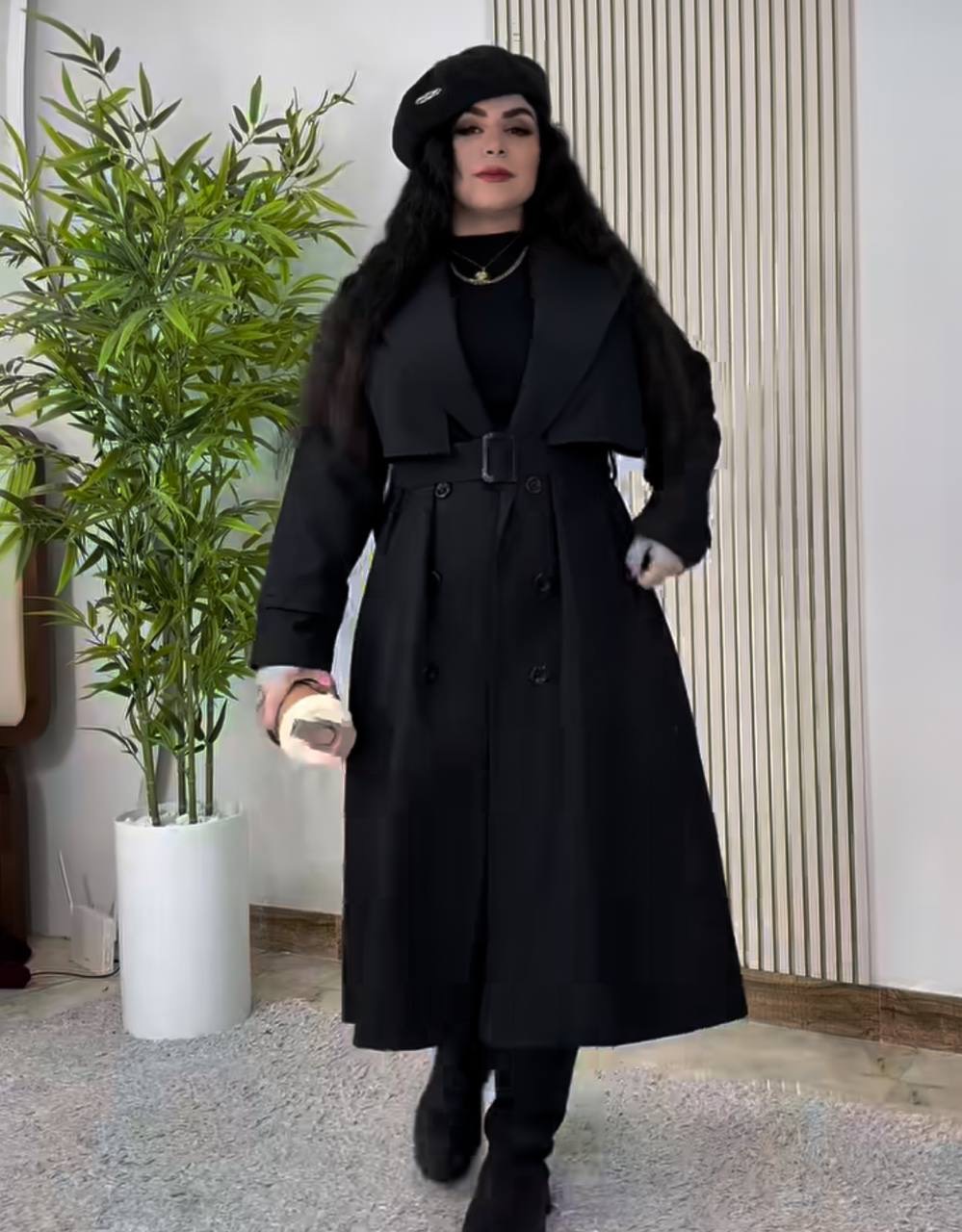 بارونی بلندآستردارشیک زنانه باارسال رایگان قبل از ثبت سفارش پیام دهید فقط مشکی موجود