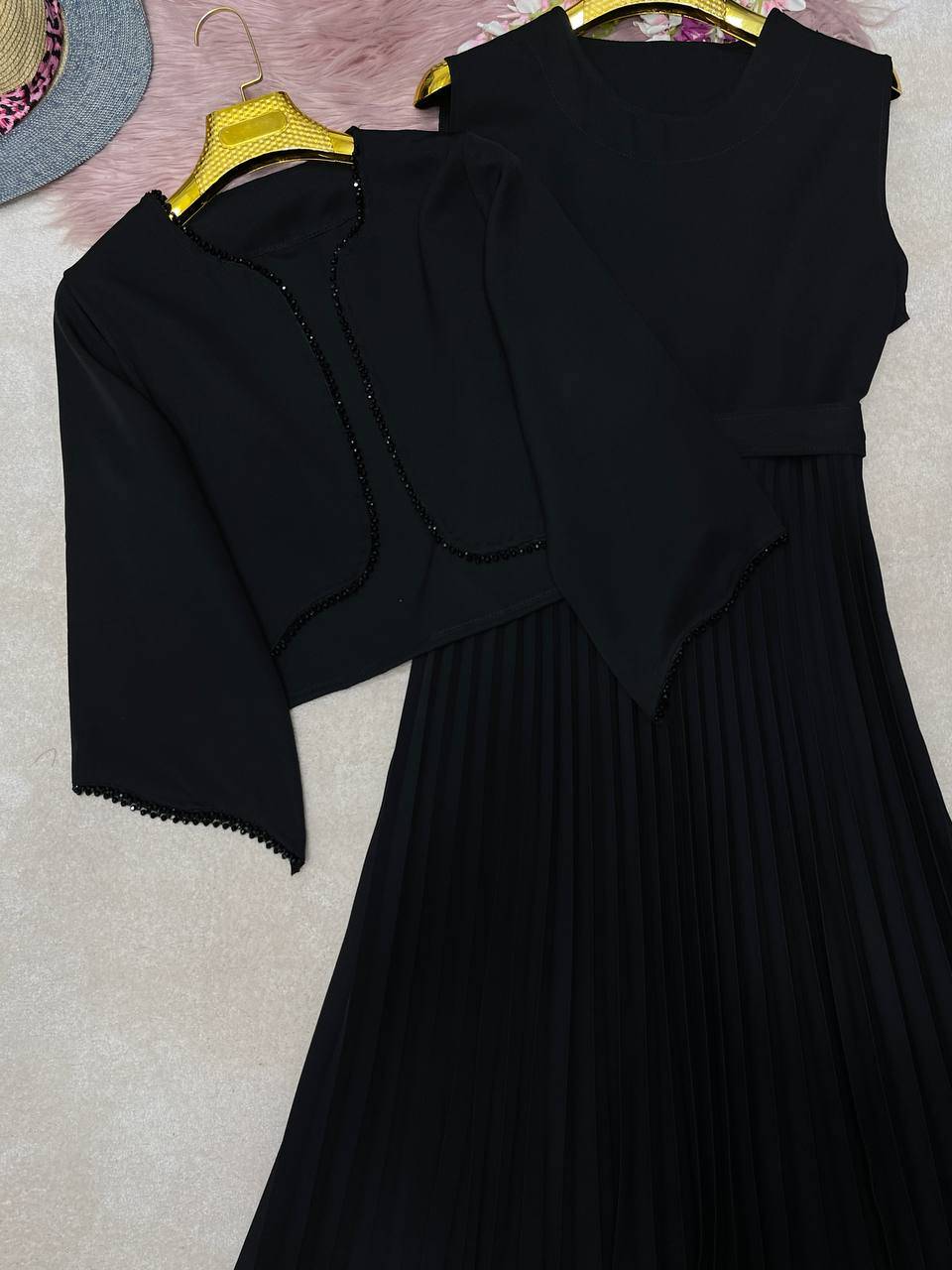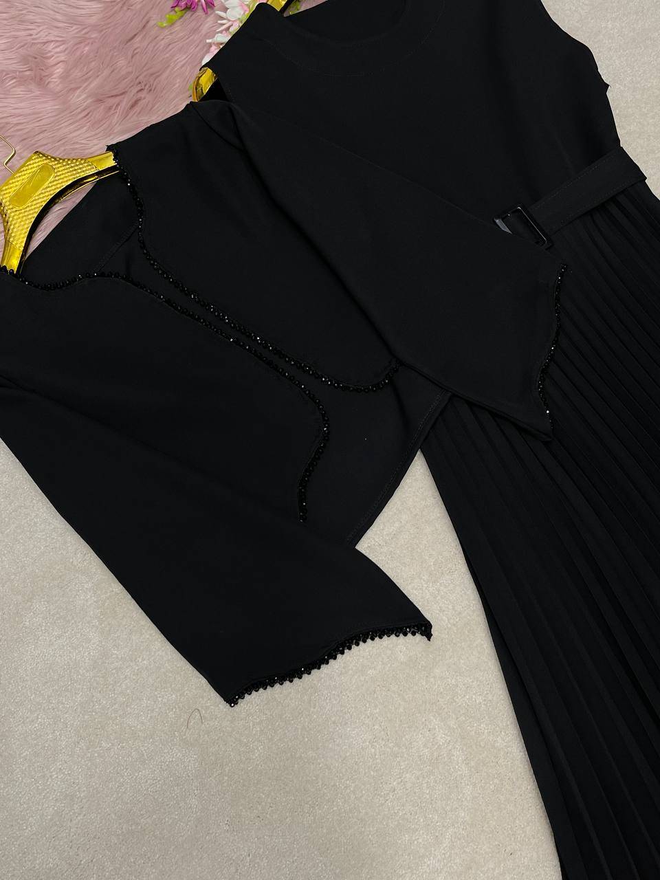 شناسه : #7962 نام : کت سارافون پلیسه جنس : کت:کرپ مازراتی زیره:کرپ اسکاچی رنگ بندی : مشکی سایز ها : فری۳۸تا۴۶ قیمت ۱۸۹۰ ✅️قدکت حدودا ۵۰ قداستین ۴۶ دوربازو۴۲ دورسینه ۱۱۰ / ✅️قدزیره ۱۳۲دورسینه ۱ ۰۶