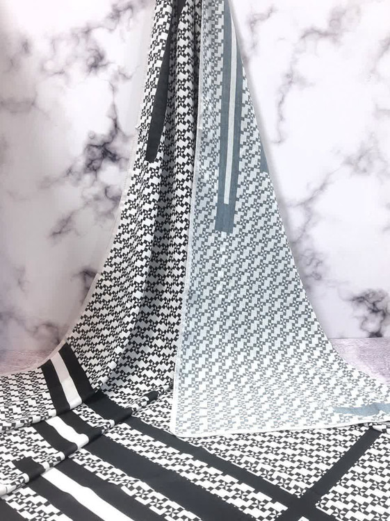 ببین چه دلبری اوردیم ، سفید مشکی اسپرت تو بازار کمه ،اونم همچین سفید مشکی که لاینهای مشکی که حاشیه روسری اومده خیلی شیکش کرده✨🤍