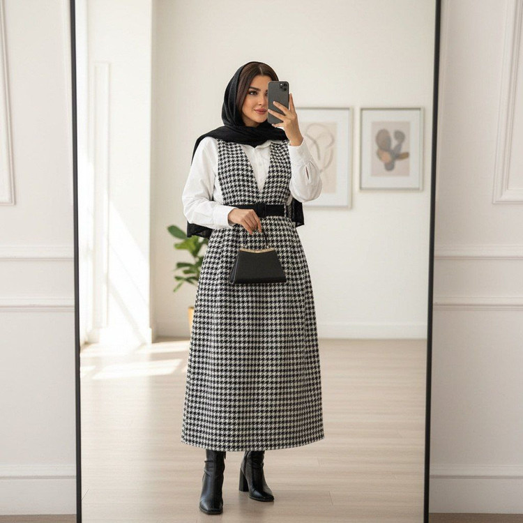 سه تیکه زنانه شیک شومیزسارافون کمربند