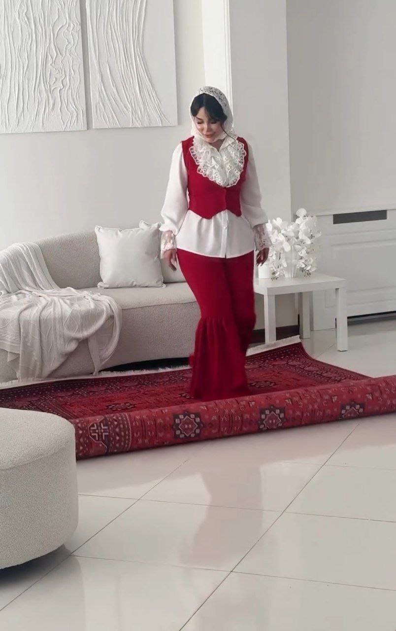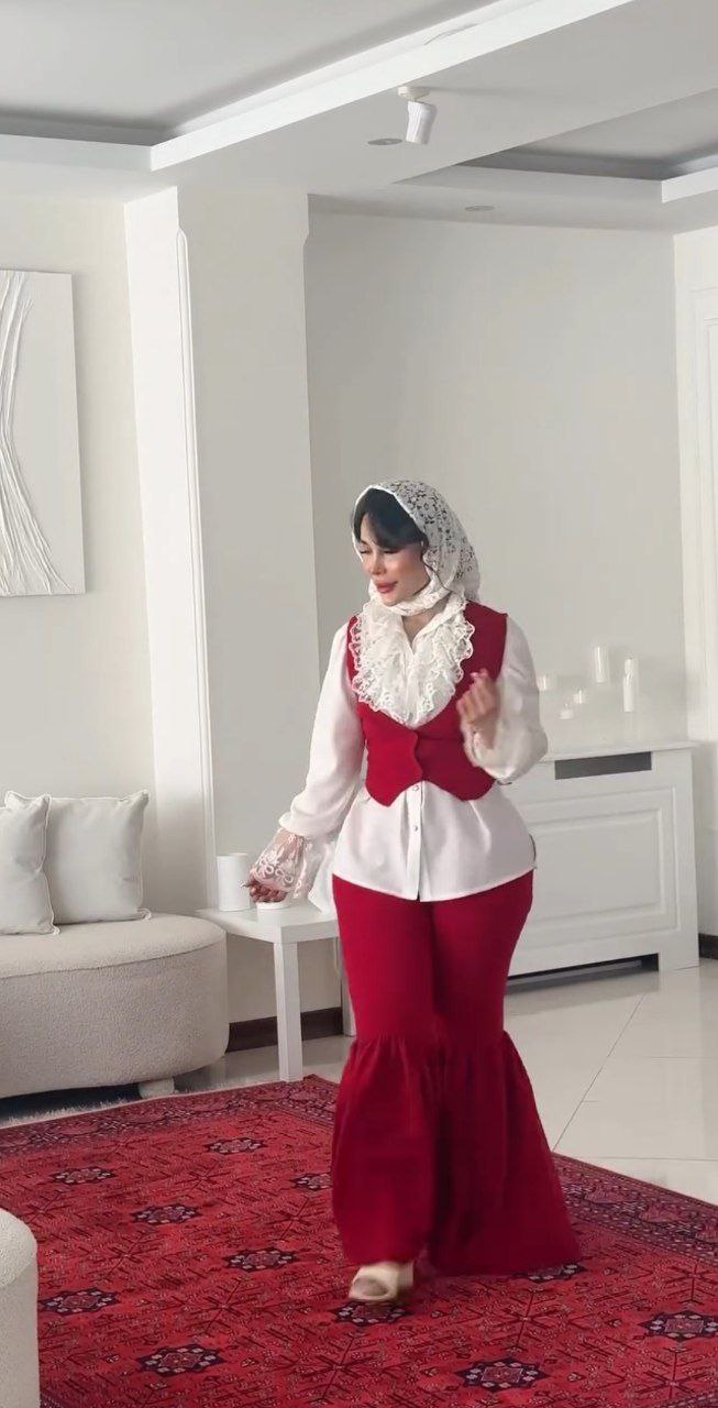 اولین کالکشن یلدایی ۱۴۰۴ست چهار تیکه وست.شومیز.شلوار.روسری باارسال رایگان جنس مازراتی اعلاوگیپورفری سایز ۳۸تا۴۶سایزجداندارد