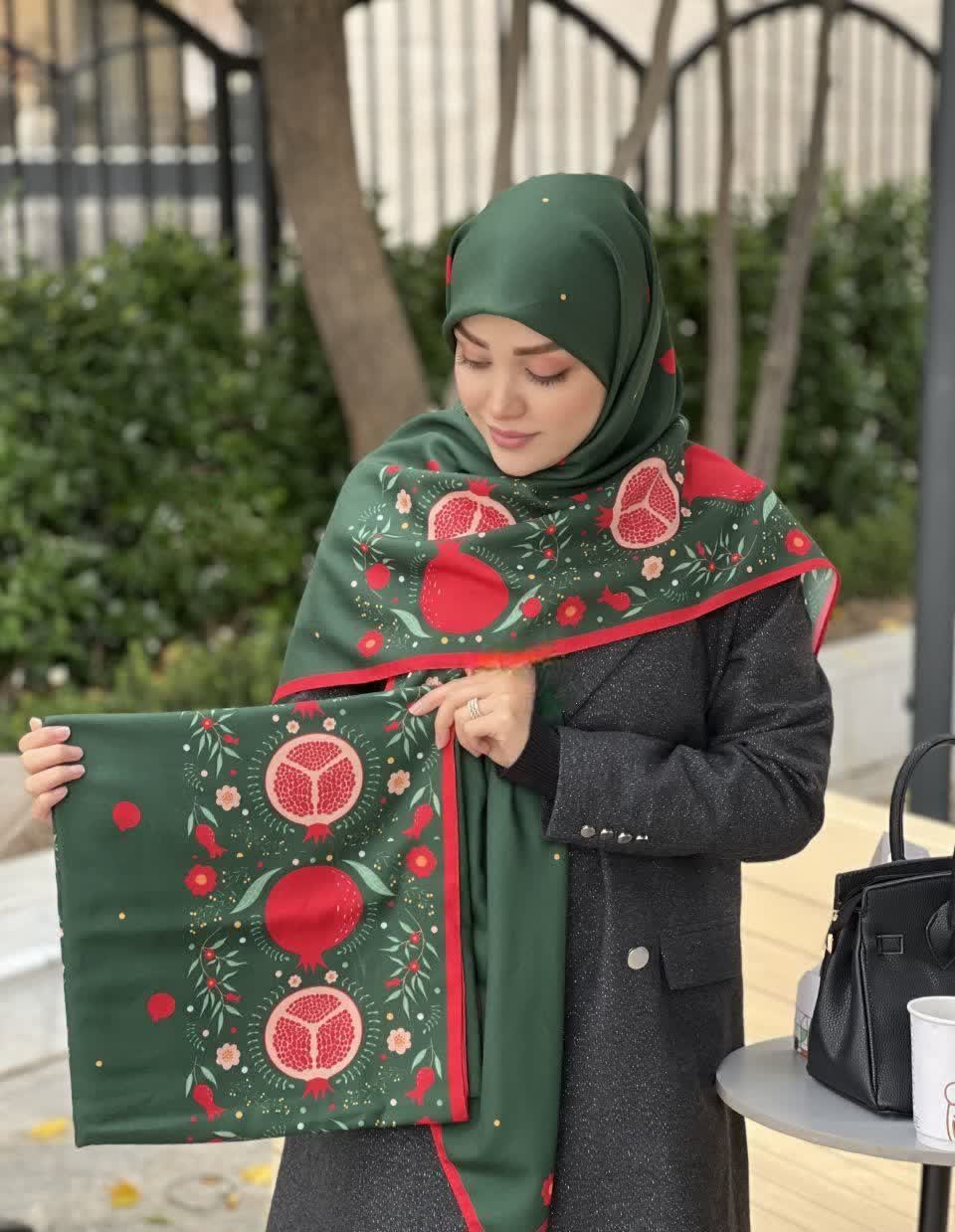 سلیقه شخصی خودم جوریه که دلم نمیخواد یه روسری رو بخرم اونم فقط برای یک شب بعدش دیگه بخوام بزارم گوشه کمدم بمونه، برای همین سعی کردم یه روسری یلدایی دوقالب براتون طراحی کنم که شب یلدا شیک و خاص باشه بعد از یلدا هم طرح انارش رو تا بزنی و داخل بندازی و بتونی راحت استفاده کنی😍 اینجوری از خرید مناسبتی نهایت لذت رو میبری🤍✨