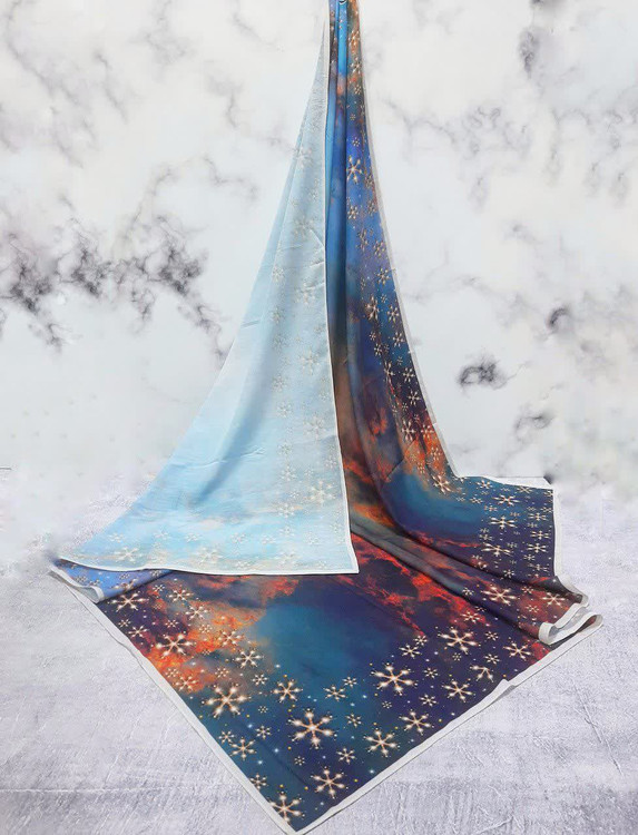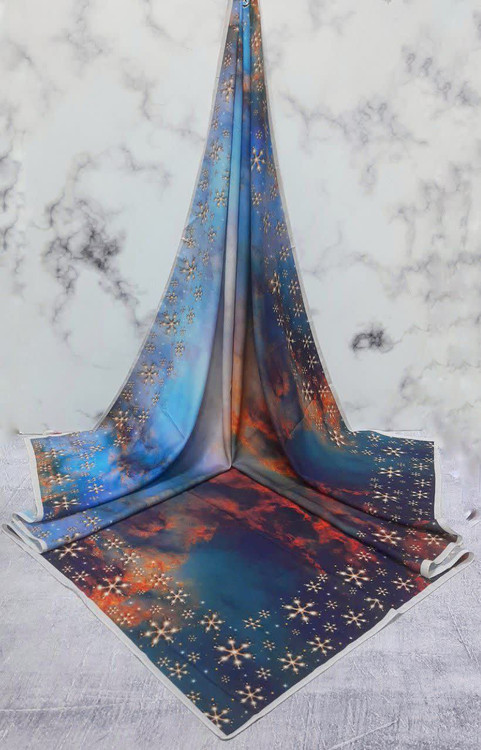 تصمیم گرفتم از این به بعد روسری هایی که وقتی سه گوش میشن تم رنگی هر طرف با طرف دیگه فرق داره،از دو طرف عکاسی کنم، اینجوری هزینهی عکاسی چندبرابر میشه اما من برای نگاه قشنگتون خیلیییی بیشتر از اینا ارزش قائلم🤍✨روسری طرح آسمان هم وقتی تا میشه دو تا تم رنگی متفاوت داره برای همین از تمام جهت ها عکاسی کردیم🦋✨ 🌻